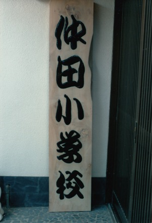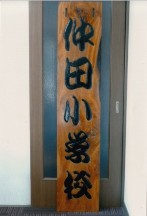 仲田小学校の終業式にて、完成した校名板のお披露目式に製作者の落合等さんほか、滝本代表、加地さん、渡辺、石嶋の4名で出席してきました。